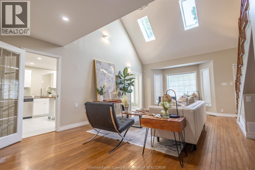 1.75 storey cape cod home, approximately 3500 sq ft, is set on a gorgeous landscaped 75x190 ft lot. Large main floor primary suite, walk in closet, renovated ensuite bath, huge barrier free shower. Large great room, soaring ceilings, skylights, hardwood floor. Formal dining room, newly renovated kitchen, stainless steel appliances, rolling island, large eating area with bay window. Main floor laundry. Also a family/play/games room & mudroom. An extra wide solid wood staircase leads to the 2nd floor, features a Juliette balcony, 2 bedrooms, HWF, 4pc bath and a 20x29 bonus room with angled ceiling, skylights. Cement patio 2024. (id:4555)